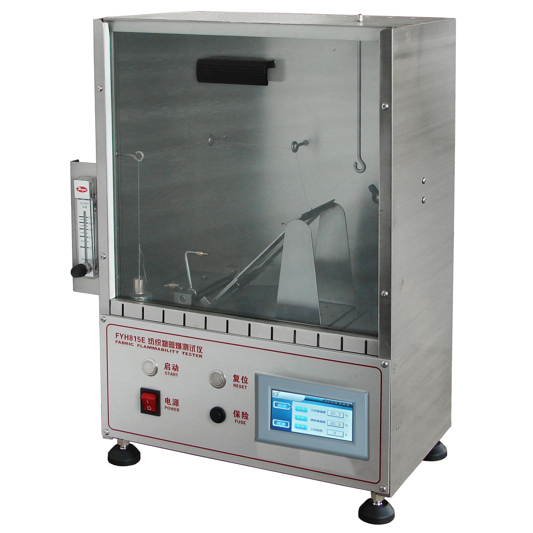 251 FYH815E型45度燃燒測試儀 16CFR 1610 美國服裝面料阻燃標準; ASTM D1230服裝紡織阻燃測試; NFPA 720 CATB 117 CAN/CGSB-4.2NO.27.5